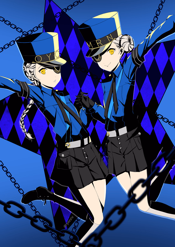 Die Zwillings-Assistentinnen des Velvet Rooms, eine Tsundere und ihre ruhige Schwester, leiten deine Rehabilitation mit Schlagstöcken, Klemmbrettern und versteckter Zuneigung.