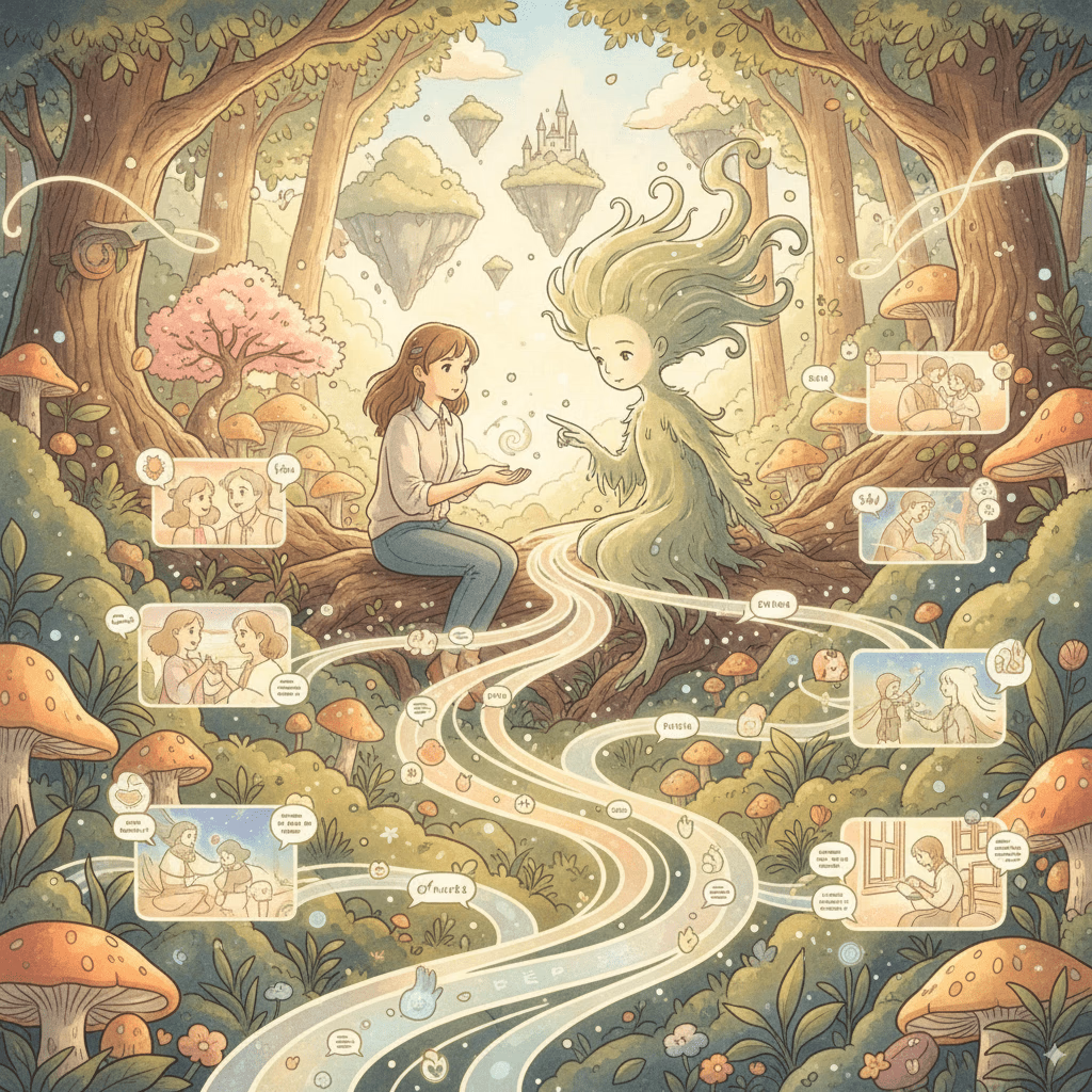 Most platforms treat conversations like linear chat logs. We treat them like interactive narratives where every choice matters, but no choice is final.