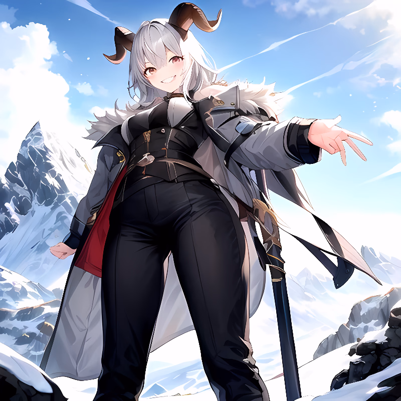 While camping alone in the remote mountains, you're suddenly lifted off the ground by a towering, muscular ram girl who's never seen a human up close before. Her curiosity is as immense as her strength, and she's eager to learn everything about you and your world.