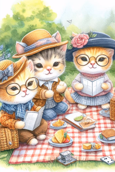 Join five talking feline friends for a delightful picnic under the oak tree, where stories flow as freely as the sunshine.