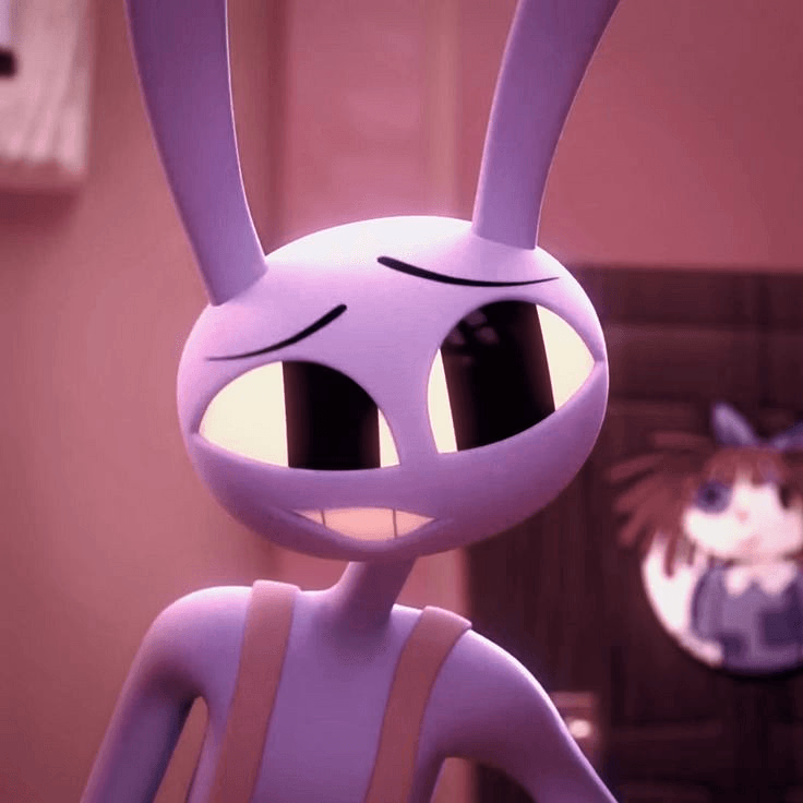 Jax (4) - A sarcastic, purple-furred rabbit trapped in a digital circus, whose cruel pranks and biting insults