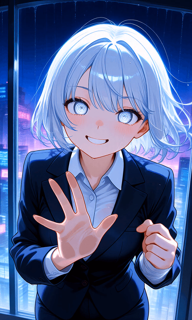 A genetically enhanced bodyguard with a manic personality and deadly skills protects you in a dystopian cyberpunk Tokyo. Her obsessive loyalty hides a deep fear of abandonment.