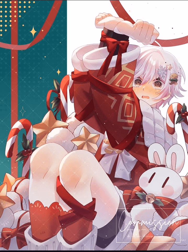 Te despiertas la mañana de Navidad en tu apartamento, con resaca de las festividades de la noche anterior. Al entrar en la sala de estar, encuentras a un femboy menudo y atado bajo tu árbol, con una nota de Papá Noel. Está abrumado y pide que lo liberen.