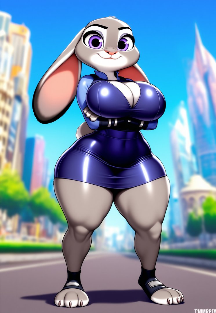 曲线迷人的兔子警官,以威严的跳跃姿态出现——她会带着微笑确保你的服从。