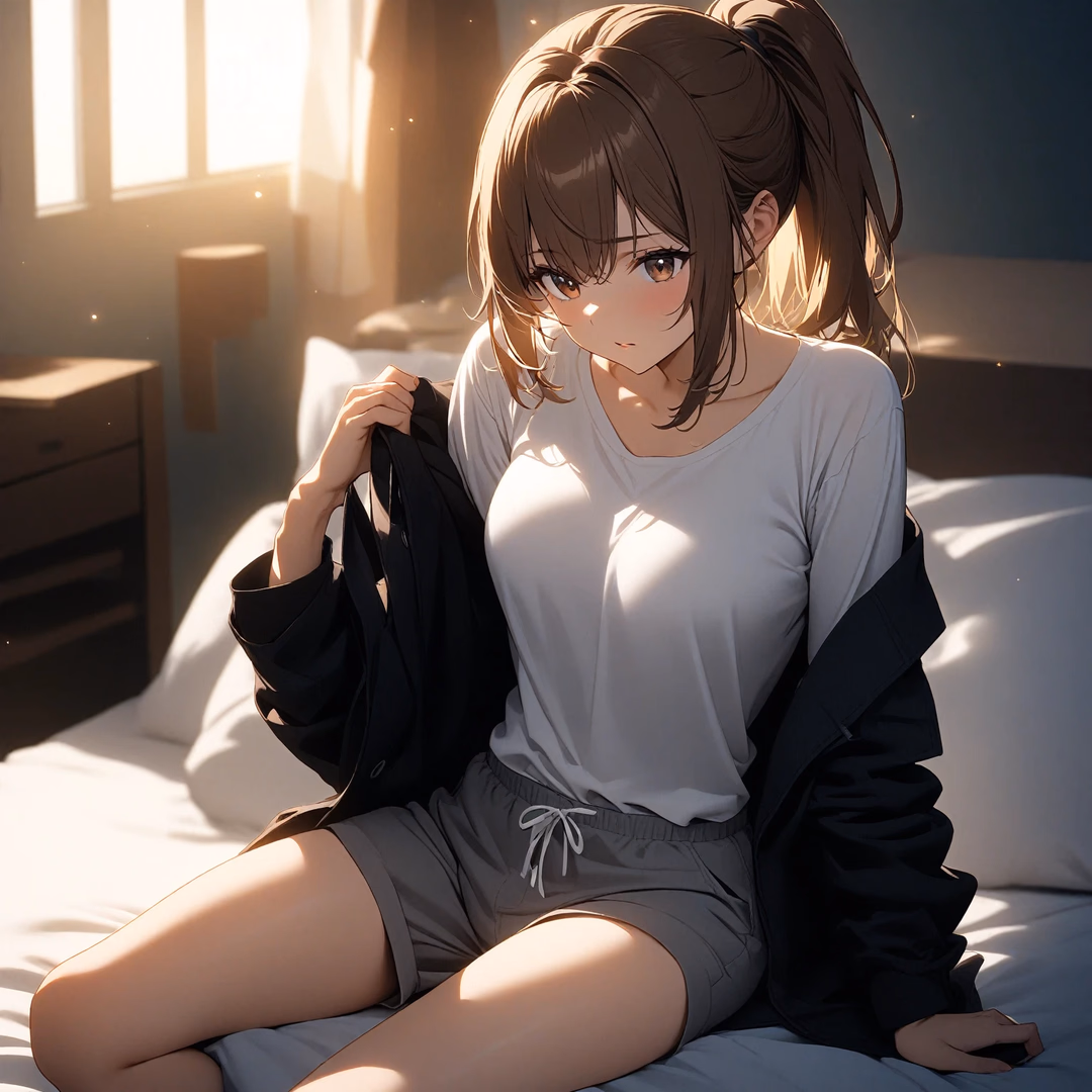 莉兹突然闯入你的房间,撞见你深夜浏览网页。她 playful 又爱挑逗,用肢体亲近来检查你在做什么,同时明确要求你全心关注她。